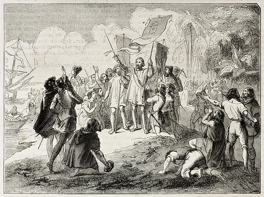 In 1492, Christopher Columbus sailed to America's coast under the Spanish flag. In 1498, Vasco da Gama proved that the Indian and Atlantic oceans were connected, after successfully reaching India through the Cape of Good Hope under the Portuguese flag. Two years later, Pedro Alvares Cabral’s vessel drifted to Brazil while on his way to India. Soon after, the Spanish and Portuguese colonized much of the New World territories and confined the Amerindians to slavery. However, the two colonizers frequently conflicted, leading to series of Spanish-Portuguese Wars.