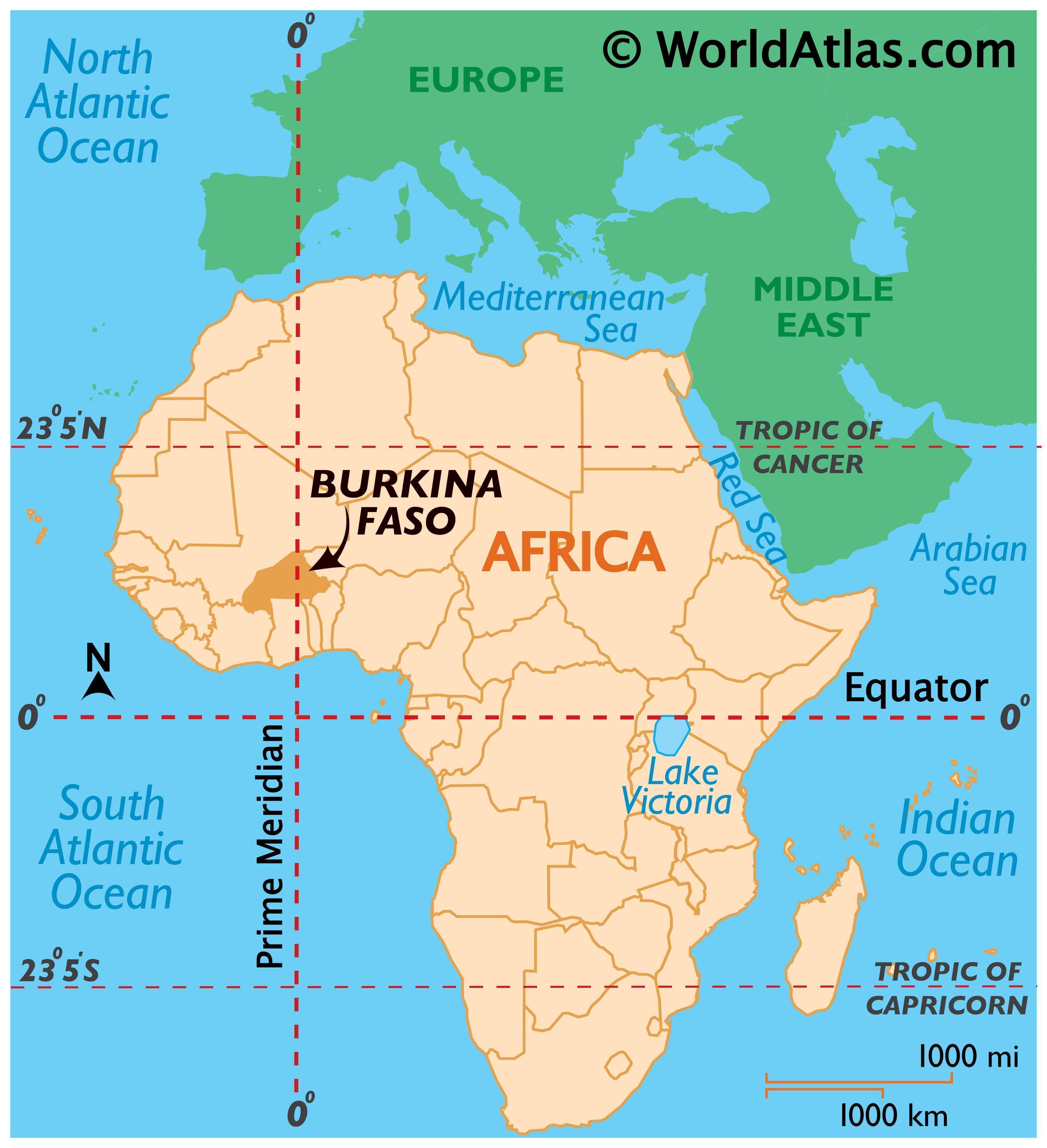 Burkina Faso is a West African country located in the Northern Hemisphere region of the Earth. As it straddles the Prime Meridian, it has territories on both the Eastern and Western Hemispheres. It borders six countries. These are Benin and Togo to the southeast, Niger to the east, Mali to the north and west, Ivory Coast to the southwest, and Ghana to the south. Being a landlocked country, Burkina Faso does not have a coastline.