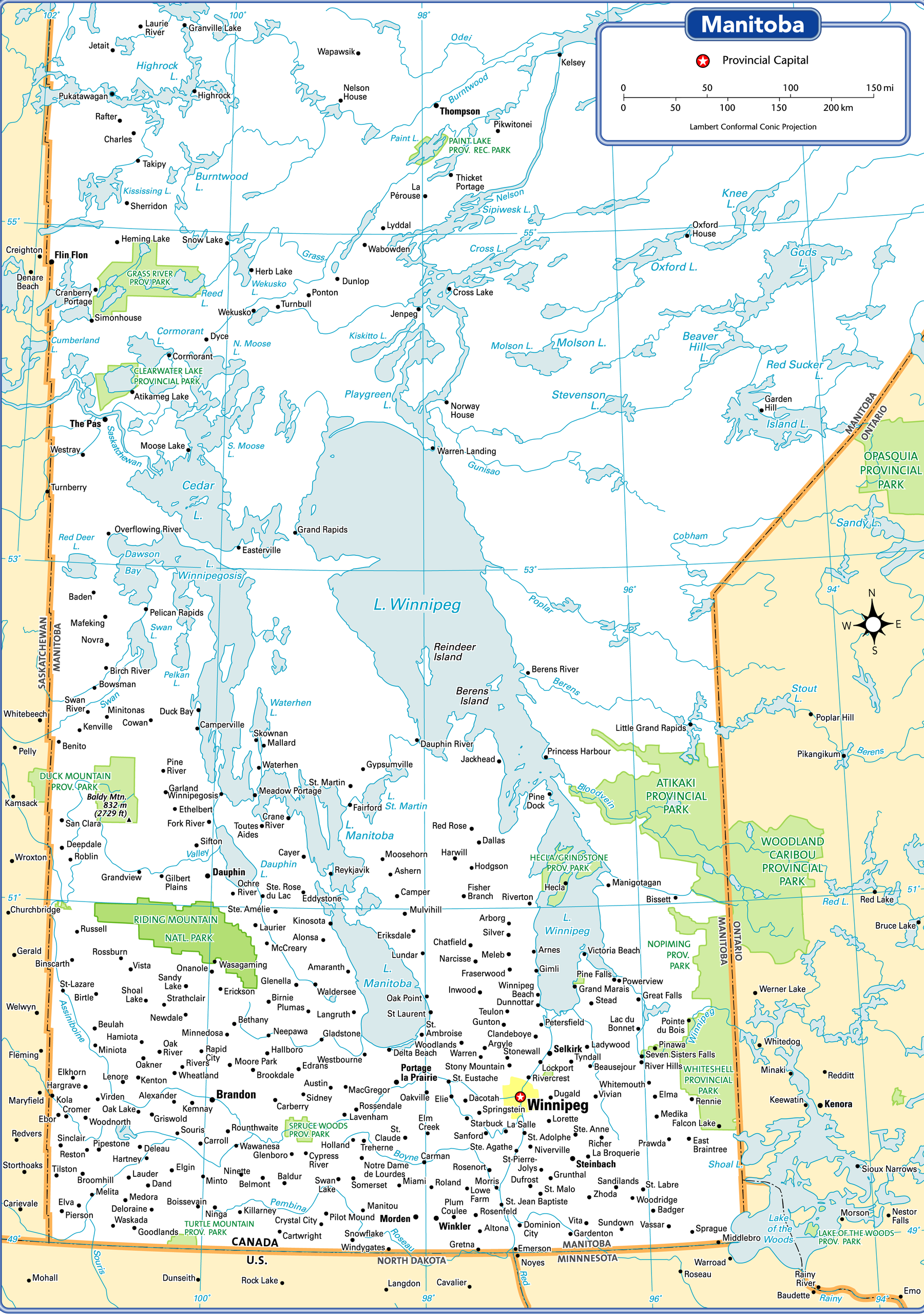 The Province of Manitoba is located at the longitudinal center of Canada, in the Continent of North America. It is geographically positioned in the Northern and Western hemispheres of the Earth. Manitoba is one of the three prairie provinces of Canada and is situated exactly midway between the Pacific and the Atlantic Oceans. It is bordered by the Canadian provinces of Saskatchewan in the west; by the Northwest Territories in the northwest; by Ontario in the east; by the Nunavut Territory in the north; and the US States of North Dakota and Minnesota in the south. It is bounded by the Hudson Bay in the northeast.