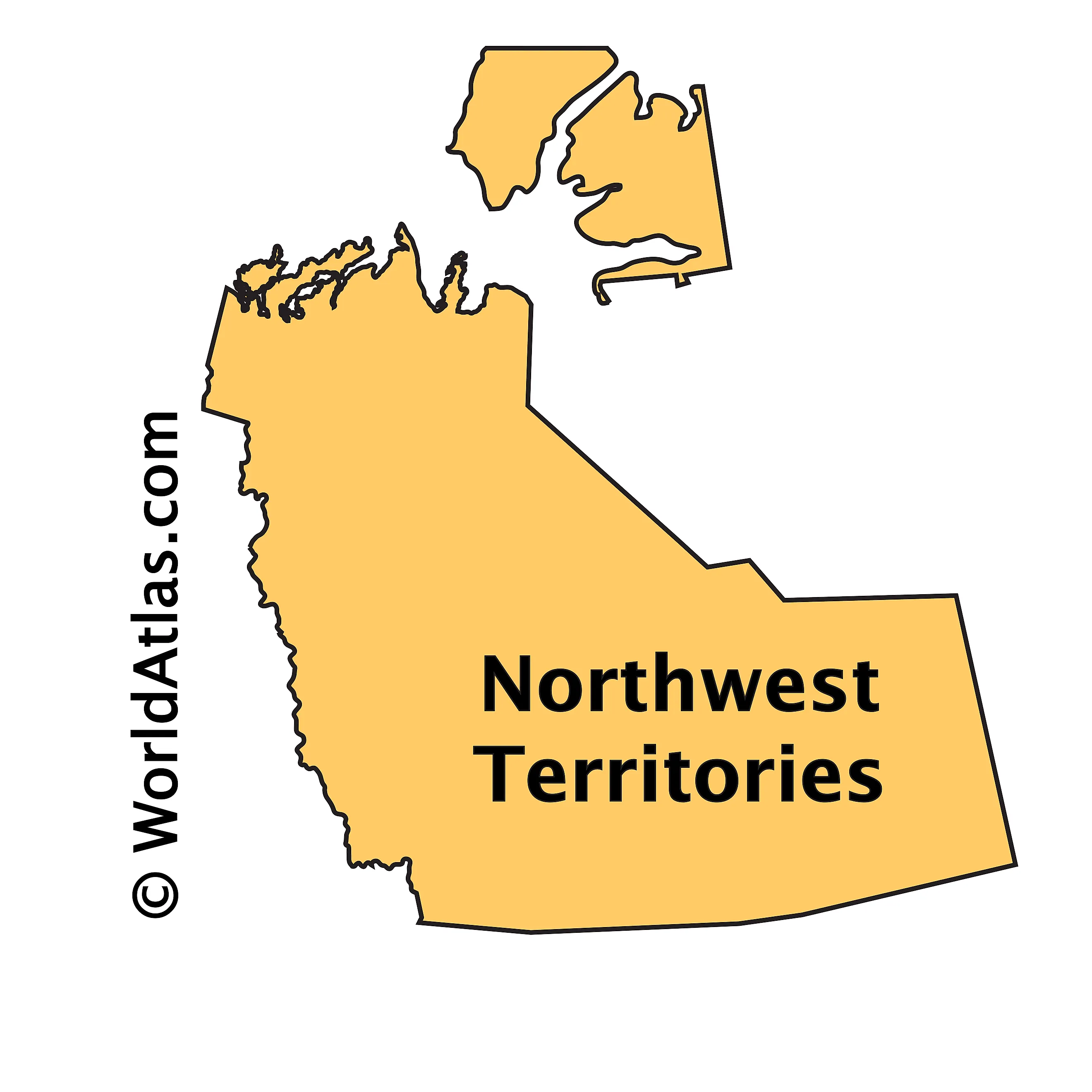 The above outline map represents the Northwest Territories, located in the northwestern part of Canada.