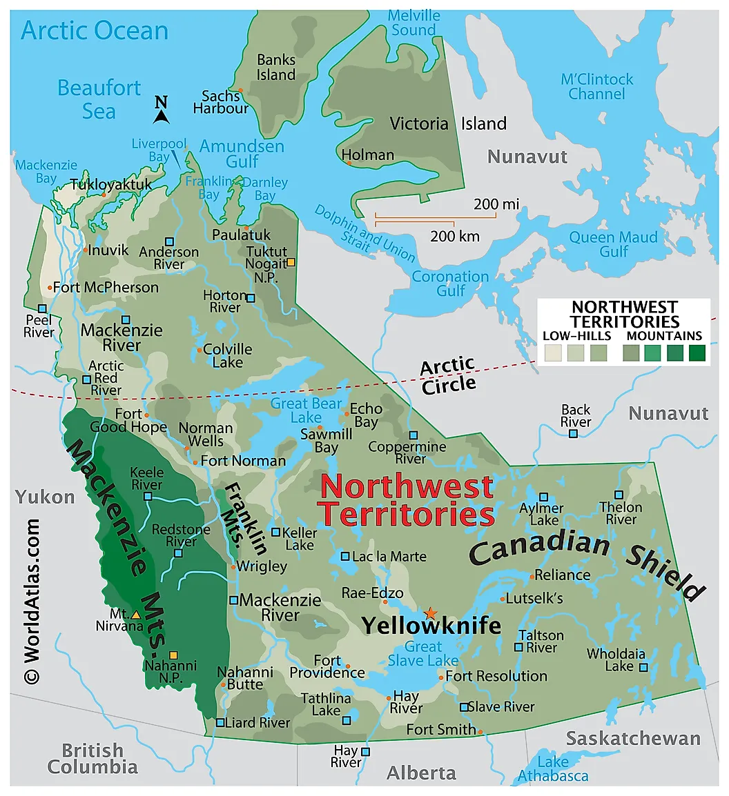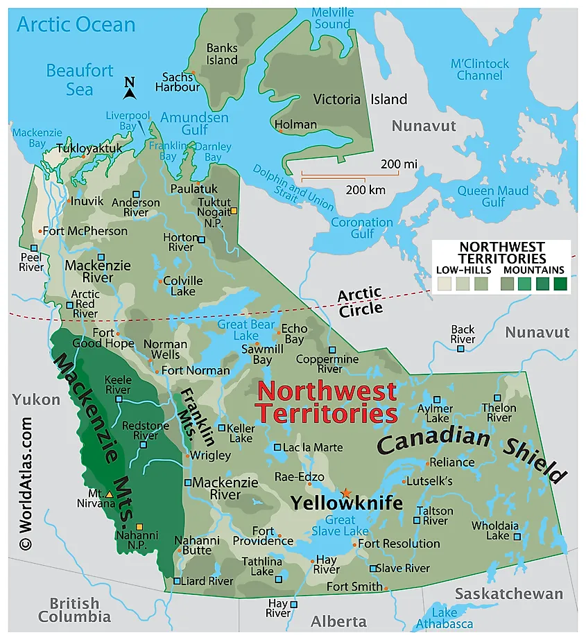 The Northwest Territories, a vast and diverse region in northern Canada, covers an area of approximately 519,735 square miles. It stretches from its border with Alberta to the Arctic Ocean in the north and shares additional borders with Nunavut to the east, Saskatchewan, and British Columbia to the south, and Yukon to the west. The territory boasts a rich geographical landscape characterized by various landforms, climate zones, and ecosystems.
