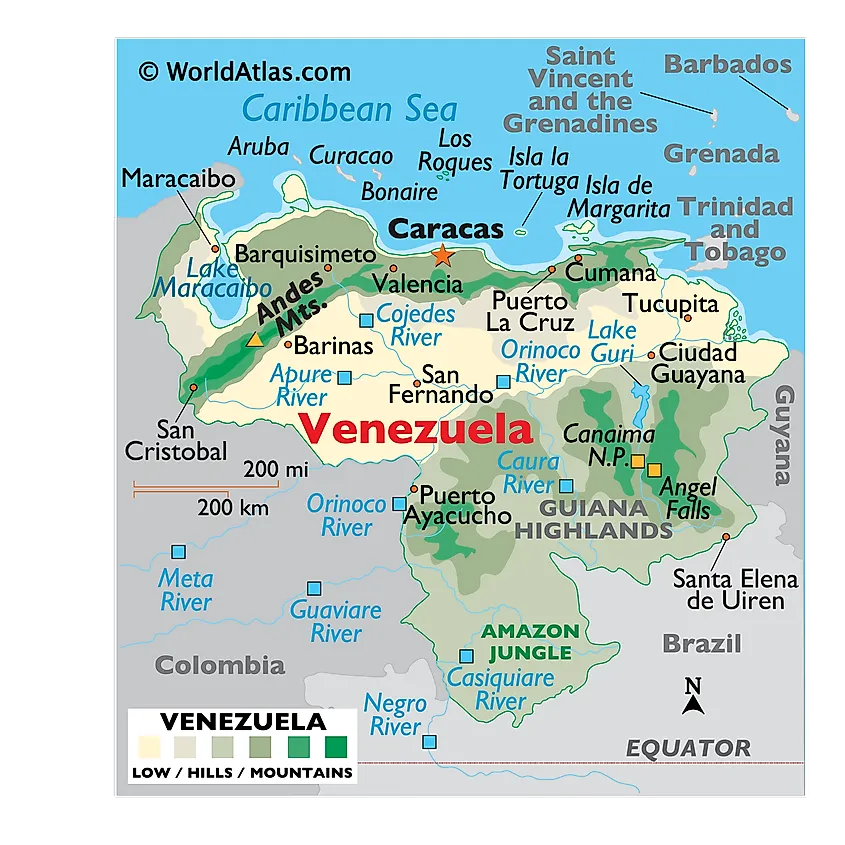Venezuela Bordering Countries: Guyana, Brazil, Colombia.